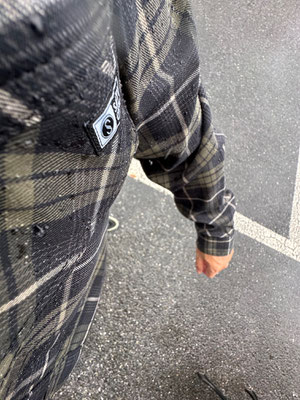 ミッドウエイトツイルの高機能フランネルは、今日のような雨も撥水加工でヘッチャラ全て弾きます!
